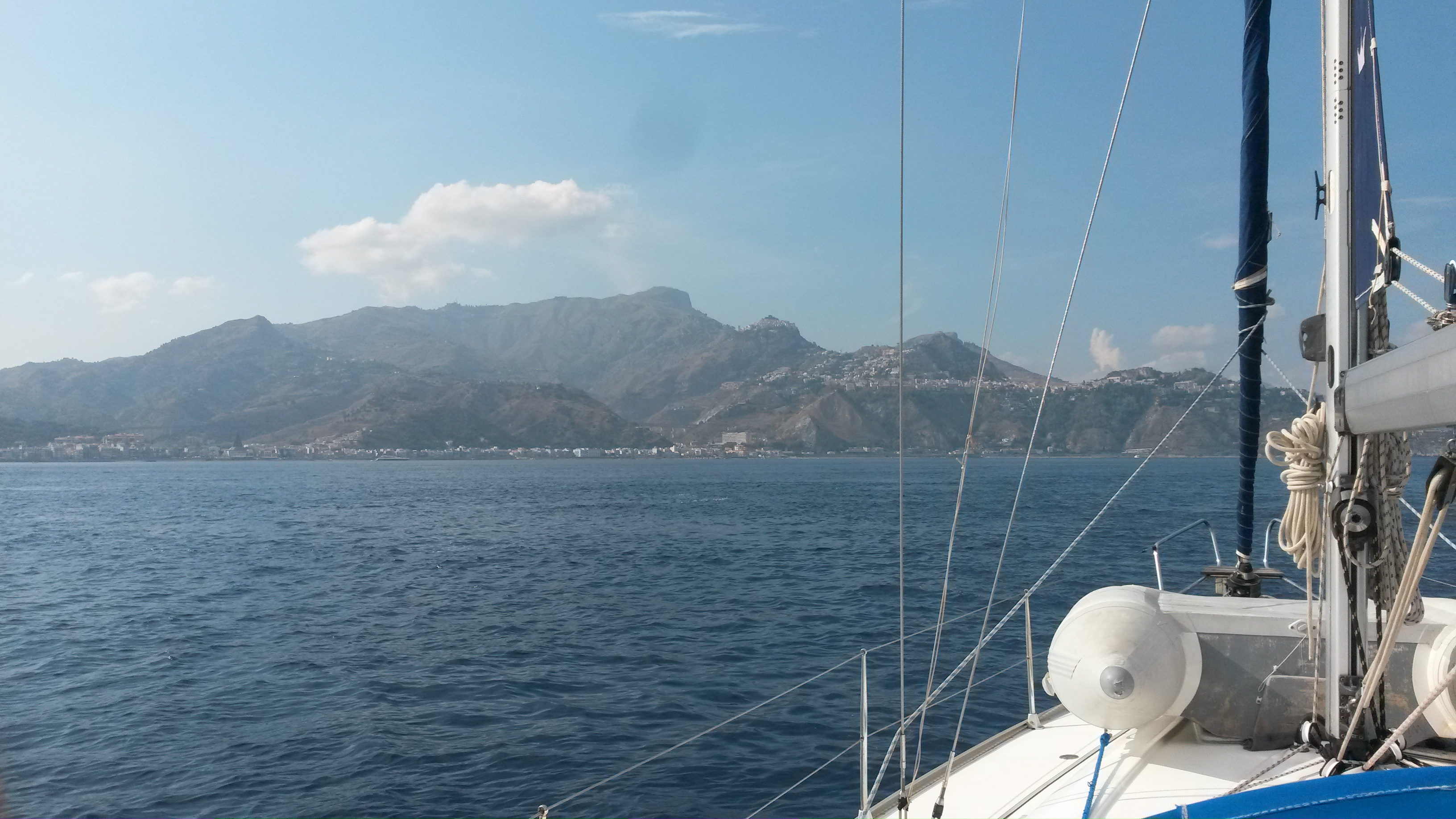 Nach Möglichkeit sollte man also besser eine andere Bunkerstation aufsuchen. Nach dem Tanken fuhren nordwärts in Richtung der Bucht von Taormina. Bei dieser Gelegenheit konnten wir auch den neuen Keilriemen für den Autopiloten testen, alles funktionierte wieder perfekt. Die Anfahrt auf Taormina war dann atemberaubend, wie die Stadt so auf ihrem Berg thronte.