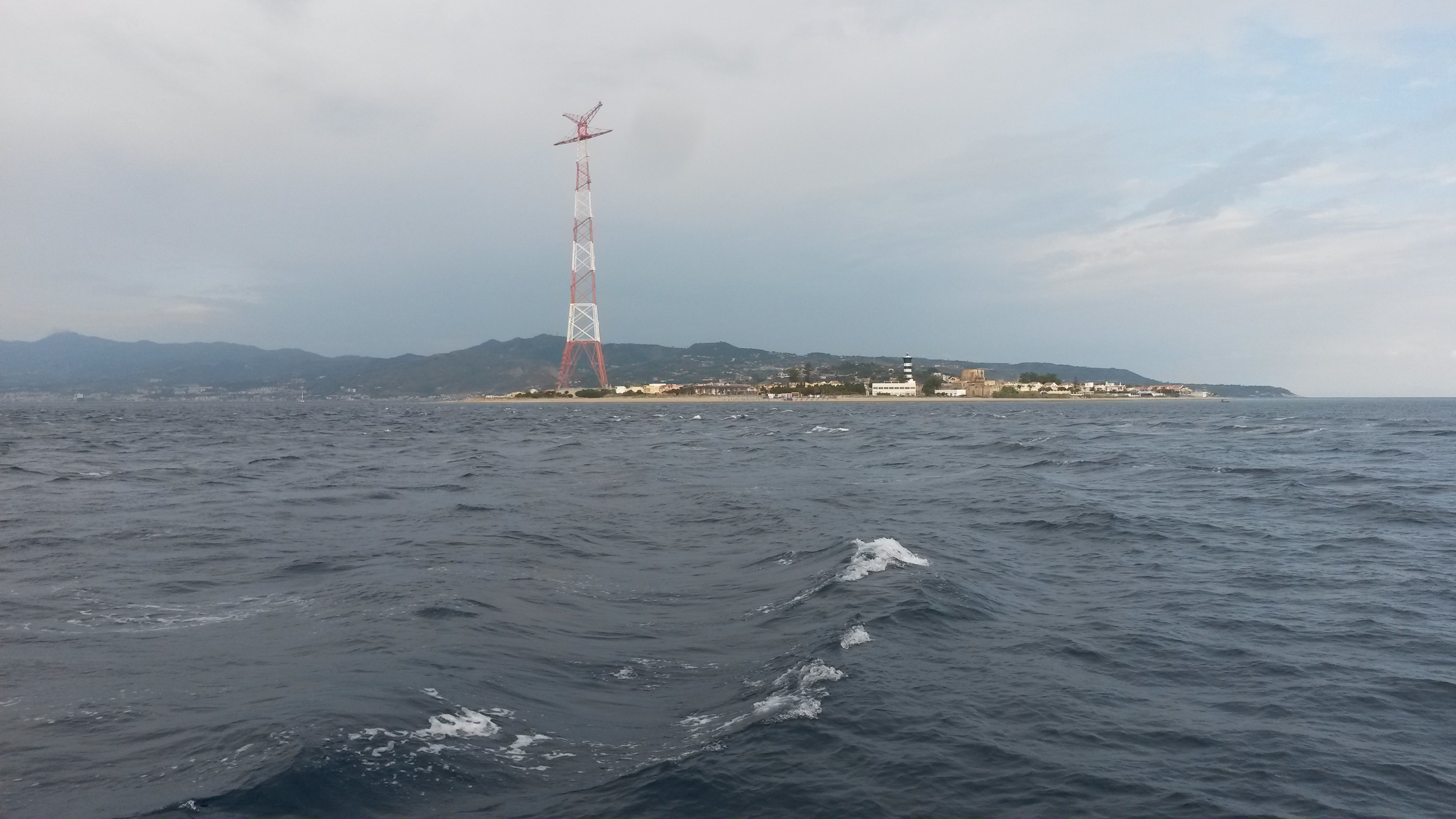 In der Straße von Messina gab es noch bis Mitte des 18. Jahrhunderts einen gefährlichen Strudel, dem auch die Legende der zwei Monster Skylla und Charybdis entsprang. Zum Glück gab es diesen Studel nicht mehr. Bei Strom gegen Welle kann aber trotzdem vor der nördlichen Einfahrt in die Straße von Messina eine steile und gefährliche Welle aufbauen. Für die Durchfahrt hatten wir tatsächlich raumen Wind und Strom gegenan. Zum Zeitpunkt der Durchfahrt aber beides nur schwach.