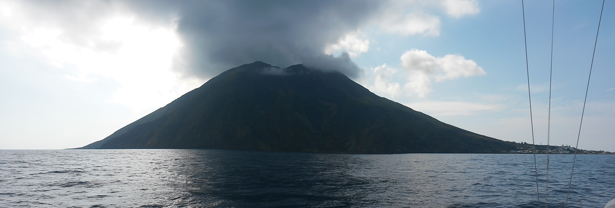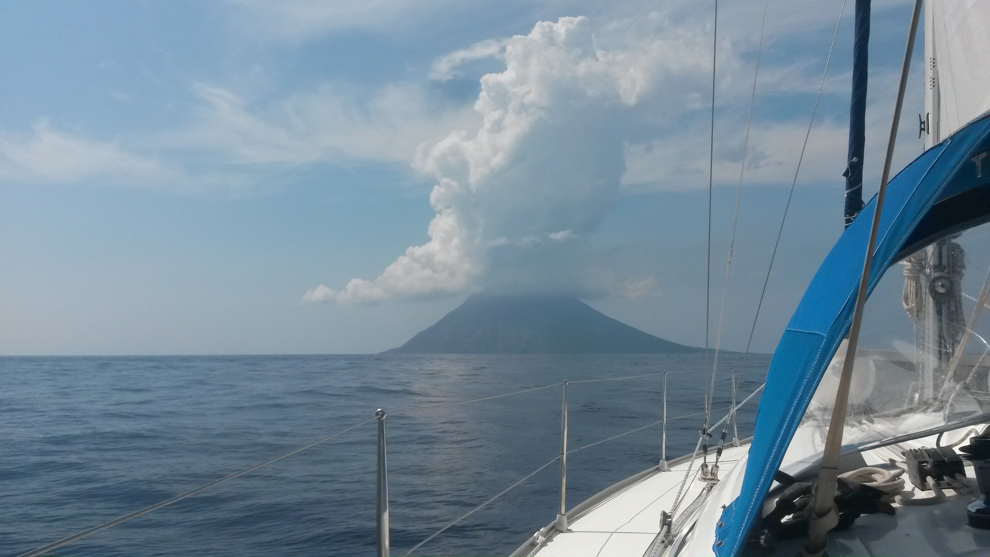 78 Seemeilen sollten es heute werden. Das Ziel war einer der aktivsten Vulkane der Erde, der Stromboli. Ein einzigartiges Naturdenkmal und die nördlichste der liparischen Inseln. Die Anfahrt war schon von weitem beeindruckend.