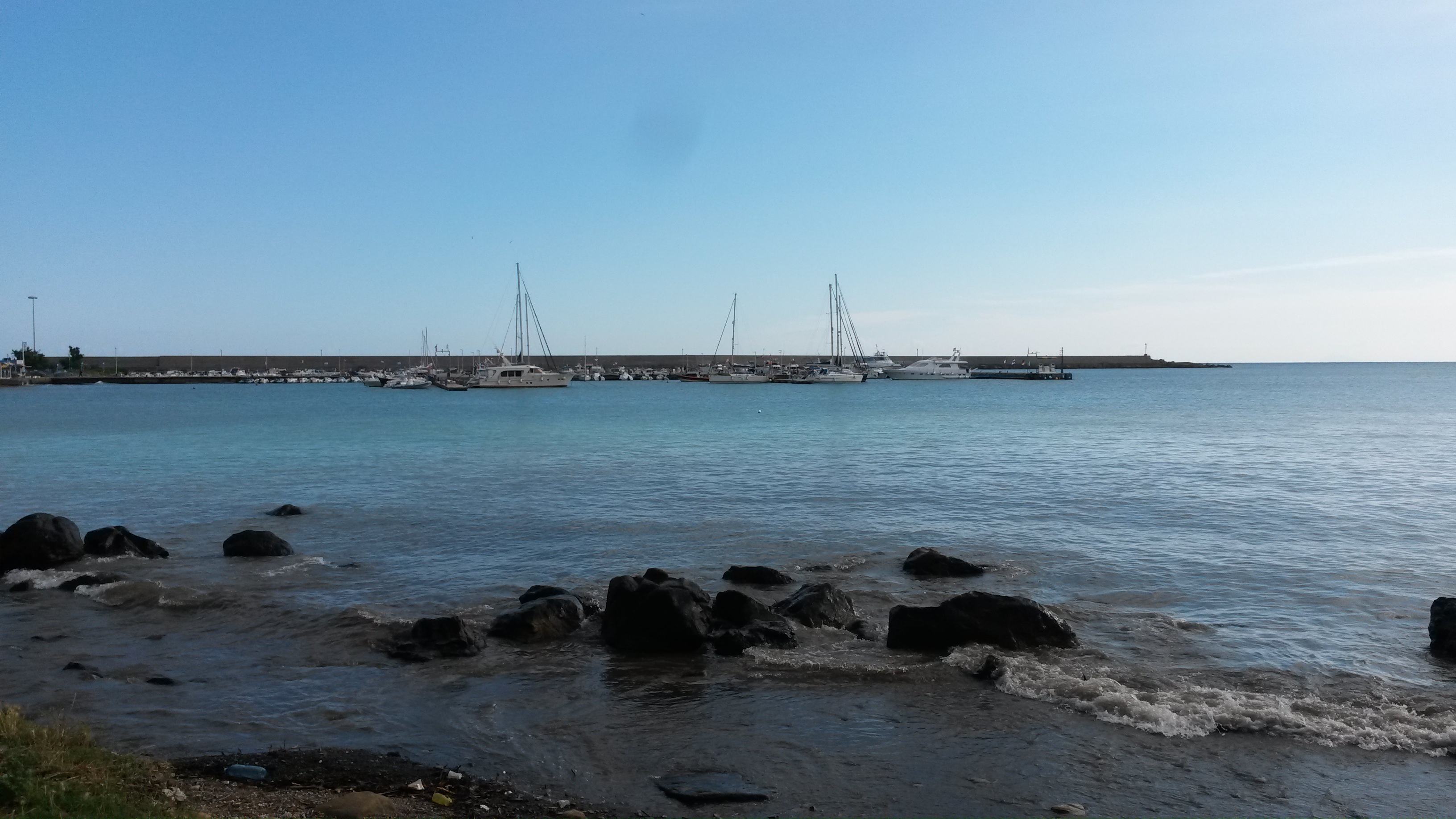 „….das Wetter und der Wind waren so perfekt wie nie zuvor und wir staffelten mit über 7 Knoten auf direktem Kurs auf das Ziel zu. Als der Wind über 18 Knoten aus 30 Grad auffrischte, war das Reff drei auf beiden Segeln angesagt um das Boot nicht zu sehr in Lage zu bringen, denn die über 2 Meter hohen Wellen von steuerbord verlangten eine gute Konzentration am Ruder damit es auf dem Wellenkamm nicht schlagartig bei dreht. Nach 7 Stunden Ritt am Wind und auf den Wellen, und nach zwei kurzen Schlägen um etwas Abstand zum Capo Zaferano zu gewinnen, liefen wir parallel zum Verkehrstrennungsgebiet in Palermo ein…..Die Marina Palermo war etwas versteckt hinter einem künstlichen Wall und der massiven Hafenbetonmauer und somit schwer zu erkennen. Sobald man aber einkurfte, waren Seegang und Wellen komplett weg….“