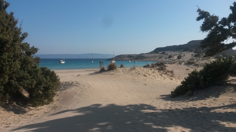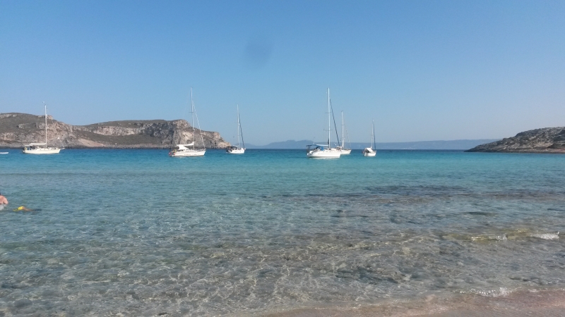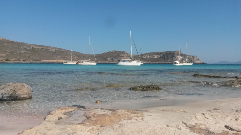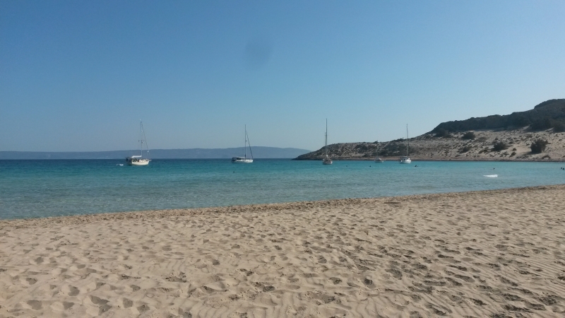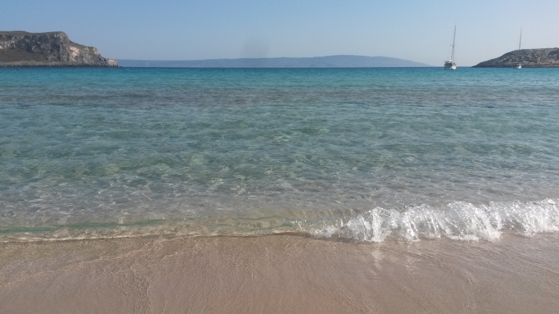 So drehte auch unser Wind auf Süd-West und nahm wenigstens auf zwei Beaufort zu. So konnten wir den restlichen Weg bis Elafónisos unter Segel laufen und am idyllischen Simonsbeach ankern.