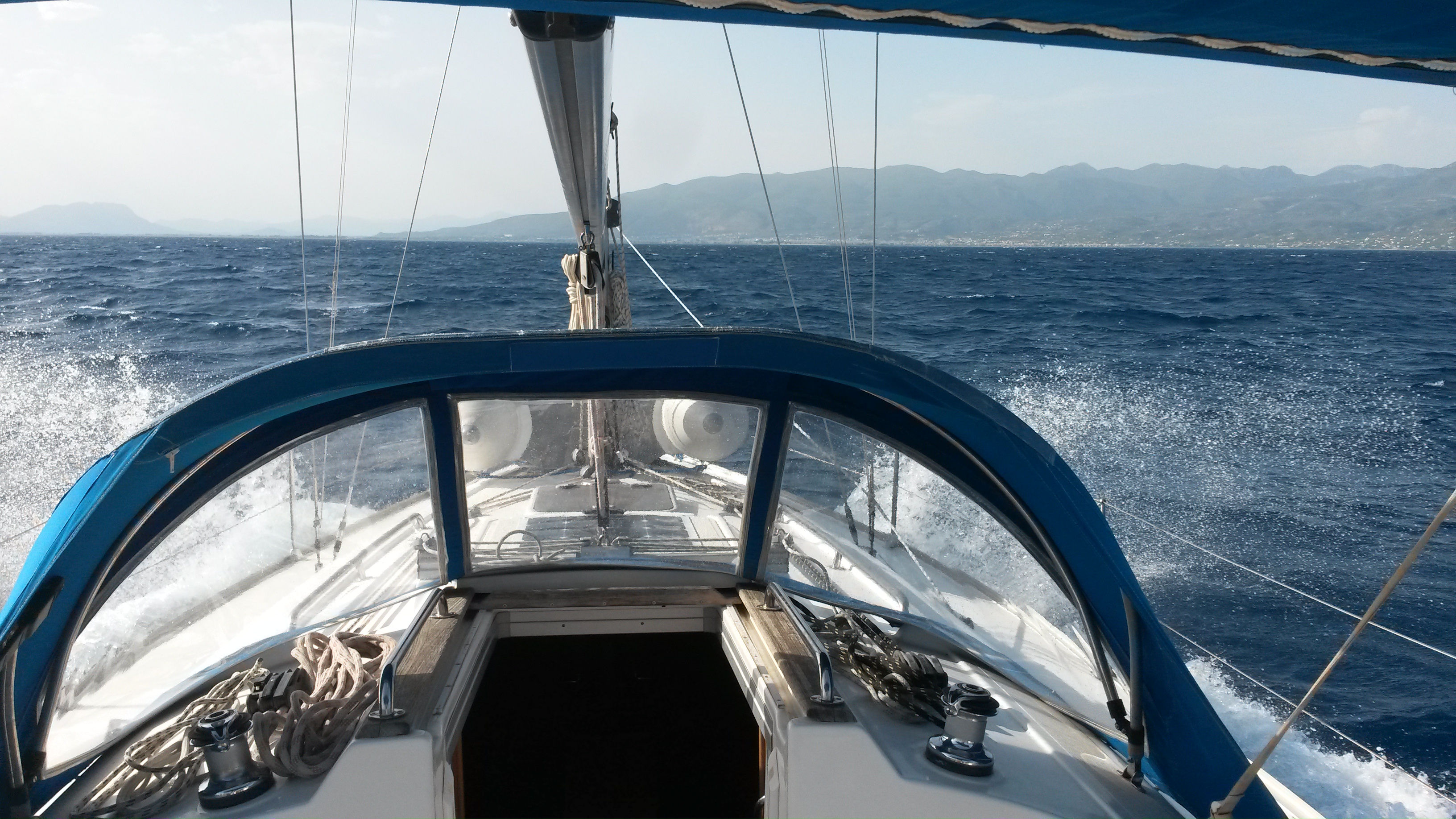 Der Wetterbericht am Vorabend hatte uns leider zu Ändern unserer Pläne bewogen. Der Wind aus West sollte gegen Mittag deutlich auf fünf Beaufort zunehmen. Und auch in den nächsten Tagen in dieser Stärke wehen. Bei der Rundung des Kaps Tenara war noch mit einer deutlichen Zunahme des Windes zu rechnen. Gegen an wäre das zu viel für unsere Bavaria 36 gewesen. Andererseits wollten wir am Donnerstag in Kalamata sein, um ein weiteres Crewmitglied aufzunehmen.